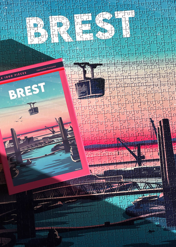 Découvrez le plaisir d’assembler les 1000 pièces de notre puzzle "Brest (Vue sur la Penfeld)", illustré à la main dans notre atelier brestois. Chaque pièce, découpée avec précision, est fabriquée en France pour garantir solidité, couleurs éclatantes et finition impeccable. Parfait pour un moment de détente en solo ou en famille, ce puzzle invite à apprécier la beauté des paysages bretons pièce après pièce.